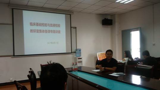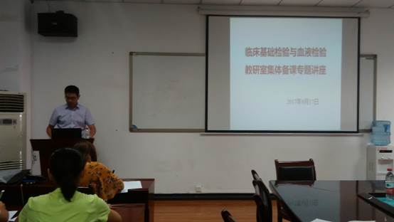 2017-2018学年第一学期开学在即,为进一步提高本教研室的教学能力,尤其是集体备课方面的能力,在教研室主任葛晓军的组织下,临床基础检验与血液检验教研室全体教师于2017年8月17日在医学检验科6楼会议室积极开展集体备课专项讲座,本次讲座有幸邀请到遵义医公司药理学教研室主任李利生教授为本教研室进行集体备课转型讲座。李利生教授,现任遵义医公司药理学教研室主任,医学硕士,副教授,硕导,曾主持遵义医公司硕士启动基金、省自然科学基金、家自然科学基金和贵州省科技攻关项目等多项基金。曾获遵义医公司基础医公司优秀教师及遵义医公司本科生毕业论文优秀指导教师。从事教学工作10余年,具有丰富的教学经验。同时李教授所在药理学教研室在教学工作方面成绩突出,得到公司专家的高度肯定。
