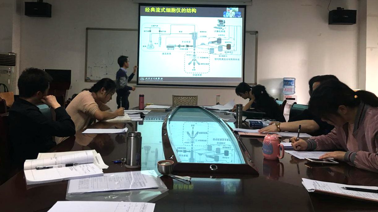 本次试讲邀请了教研室主任陈泽慧教授以及tyc33455cc太阳成集团黄俊琼教授、何应中副教授、黄健副教授等教师参加。教研室杨小叶老师对《临床免疫学检验技术》课程的第4次实验课“免疫印迹试验”进行了试讲,黄健博士对《临床免疫学检验技术》课程中第十三章“流式细胞分析仪”进行了试讲。