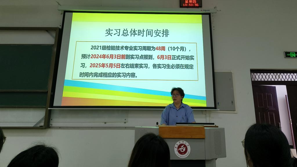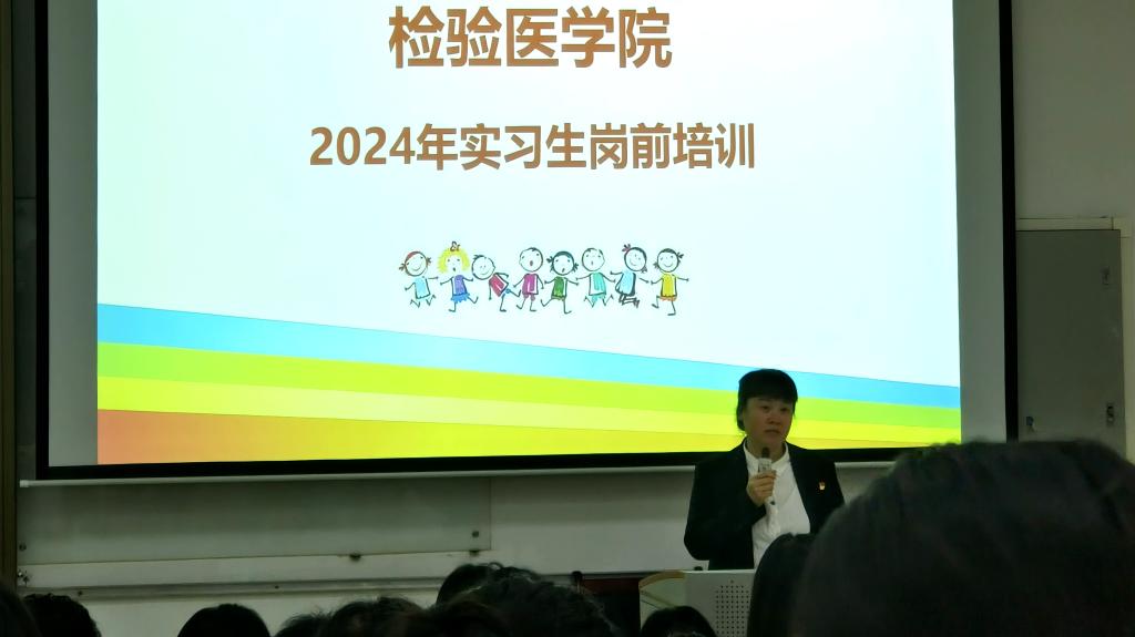 为贯彻落实公司实习教学要求,帮助实习生尽快满足临床实习要求,提升临床实践能力,tyc33455cc太阳成集团于2024年5月30日上午在tyc33455cc太阳成集团新蒲校区第二教学楼第六阶梯教室开展2024年实习生岗前培训。tyc33455cc太阳成集团检验医公司党委书记周光润、党委委员蔡亮容、实验室副主任段晓雷、附属医院检验科实验室生物安全组组长梁钟智、辅导员付裕及2021级全体实习生参加培训。培训会由辅导员付裕主持。