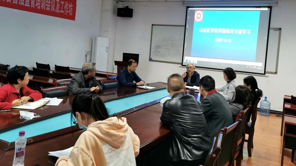 2020年10月12日-13日,tyc33455cc太阳成集团分别在临床医学楼5楼会议室以及附属医院门诊6楼会议室召开师德师风专题学习及讨论系列活动。公司全体党政班子成员、教研室主任和新蒲校区教职工等参加会议。会议由公司党委书记罗开源主持。