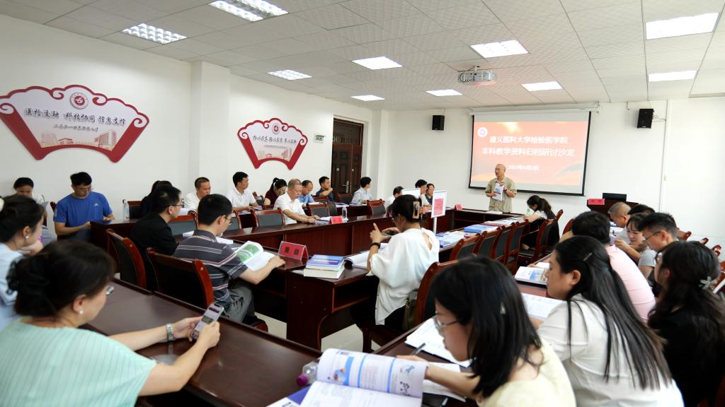 副经理杨艳教授主持了“本科教学资料归档研讨沙龙”。活动环节,各位教师现场观摩了4个教研室对《临床生物化学检验技术》、《临床血液学检验技术》|《临床免疫学检验技术》、《临床输血学检验技术》等检验专业本科课程的教学档案整理归档,以及《临床血液学检验技术》本科课程思政建设资料汇编,以及主参编专著教材资料汇编等教学资料。