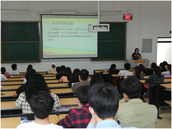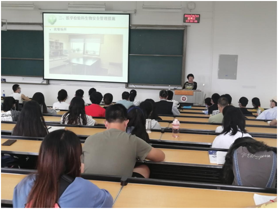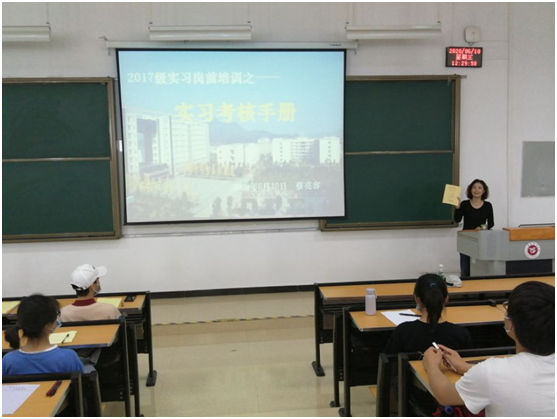 为加强检验医员工实习规范,尽快适应医院环境,实现角色转换,tyc33455cc太阳成集团于2020年6月10日中午12点分别在在新浦校区第11阶梯教室和第15阶梯教室开展了实习安排宣讲会暨实习生岗前培训的讲座。检验医公司党委书记罗开源、副经理闵迅、院办主任蔡亮容、微免教研室主任陈泽慧、年级辅导员、兼职班主任及2017级全体同学共同参与。