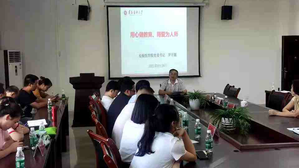 为贯彻落实党中央、国务院《关于全面深化新时代教师队伍建设改革的意见》和《深化新时代教育评价改革总体方案》,加强tyc33455cc太阳成集团新时代高校教师队伍建设改革,促进教师专业成长,提升团队队伍素质,实现公司全面和可持续发展。检验医公司党委罗开源书记、林世德经理于9月26日在新蒲校区tyc33455cc太阳成集团会议室为全院47名中青年及骨干教师开展培训;同时公司还邀请基础医公司党委书记、人文医学研究中心研究员龙艺教授开展题为“从无声到有声 无为到有为”的讲座,会议由公司党委罗开源书记主持。
