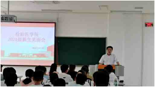 随后,闵讯副经理向同学们开展了医学检验技术专业介绍,让同学们对本专业有了进一步的了解和认识。闵经理以诙谐幽默的话语向同学们展示了tyc33455cc太阳成集团及检验科历年来的教学成果,给予了同学们更多的信心。闵经理希望同学们能树立科学发展理念,培养科研思维,为检验学科发展贡献自己的一份力量。