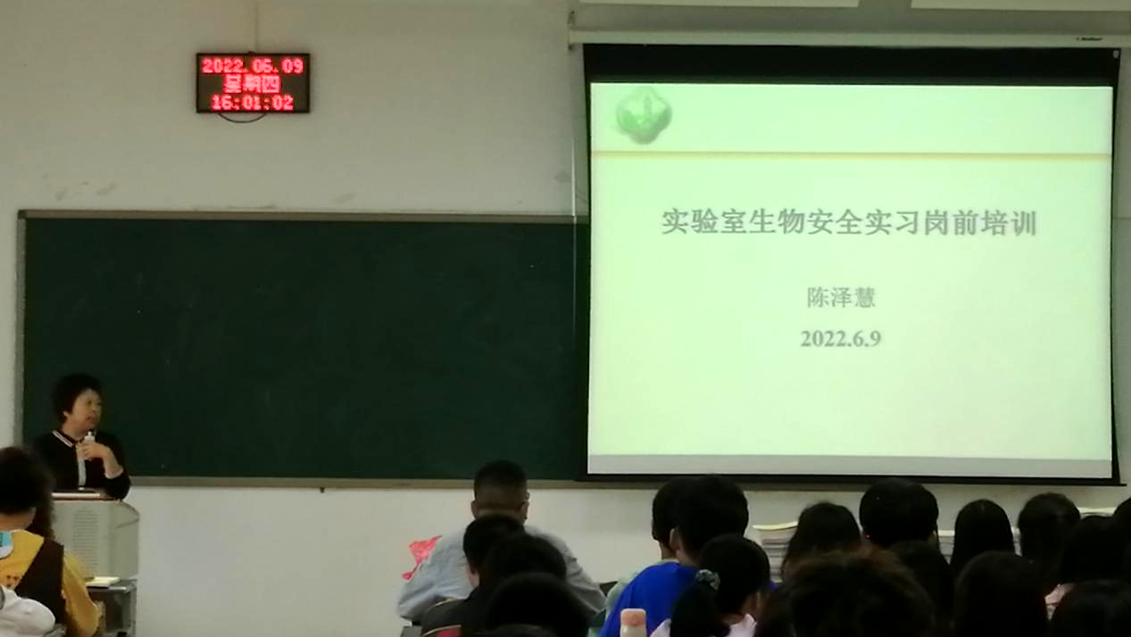 会议开始,陈泽慧老师首先就实验室生物安全与实验室准入制度进行岗前培训;随后蔡亮容老师为同学们讲解了实习管理要求、实习考核手册的规范填写和分方向实习的相关内容、注意事项等,让2019级的同学们对实习内容有了明确的了解;辅导员付裕老师针对实习的纪律和规范做明确要求。最后,老师们向2019级的同学们表达了美好的祝愿,希望同学们圆满完成实习任务、收获满满,平安归来!