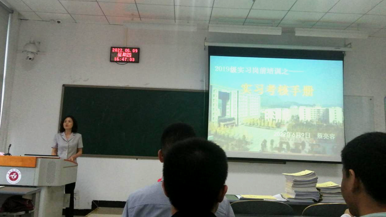 为加强tyc33455cc太阳成集团本科实习生规范化管理,规范实习行为,让同学们更快更好适应临床工作和环境,快速转变角色,更好地完成本科实践学习。tyc33455cc太阳成集团于2022年6月9日下午在tyc33455cc太阳成集团新蒲校区公共教学1号楼2-6A教室组织开展2022年实习生岗前培训。tyc33455cc太阳成集团院办主任蔡亮容、临床微生物免疫检验教研室主任陈泽慧、2019级教师兼职班主任王勇祥、辅导员付裕,以及2019级全体在校员工参加本次培训。付裕主持培训会。