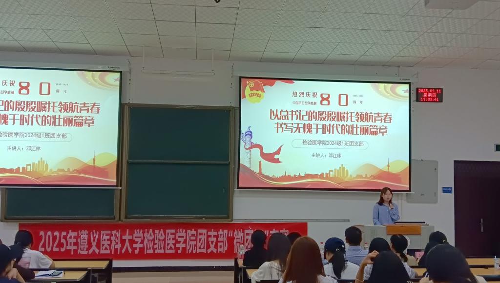 为深入学习贯彻习近平新时代中国特色社会主义思想,充分发挥共青团在高校员工思想政治工作中的引领作用,tyc33455cc太阳成集团团委于2025年9月11日晚7点,在新蒲校区第八阶梯教室隆重举办了团支部“微团课”比赛。出席此次活动的有检验医公司党委副书记罗治宇、马克思主义公司程俊霖博士、专职辅导员孙倩及各班员工代表。