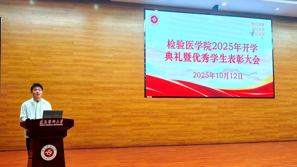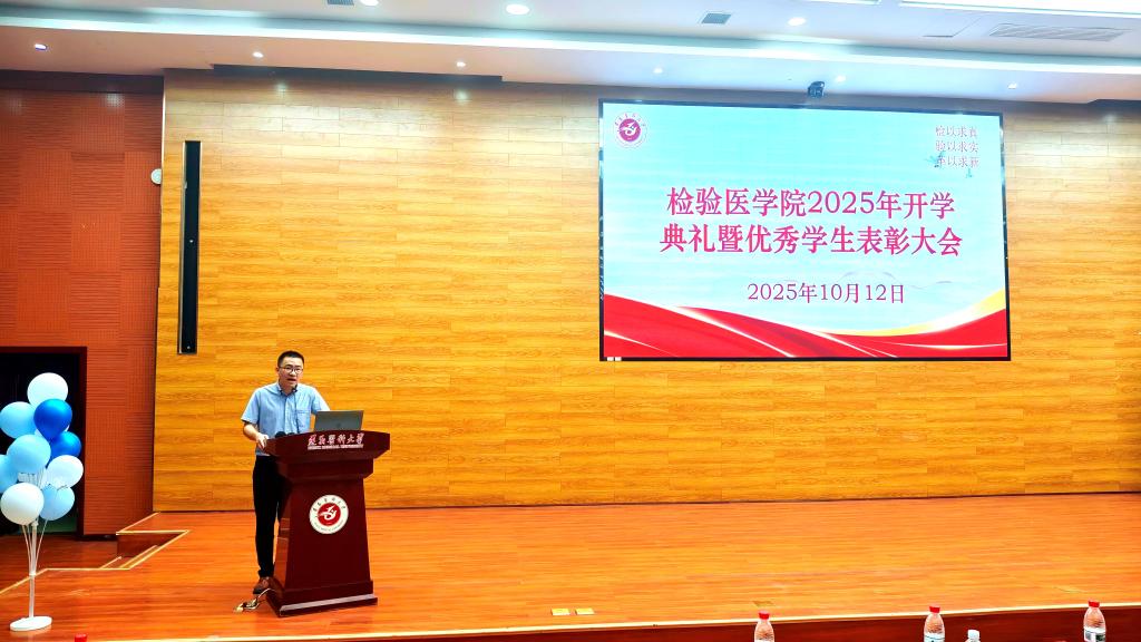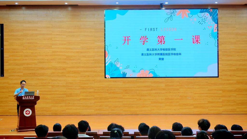 最后,附属医院检验科副主任、临床微生物检验教研室主任黄健教授为2025级新生讲授了《开学第一课》。他围绕大学认知、新生适应、专业介绍与职业规划等内容,激励新生树立远大目标,积极进取、勇于创新,在专业学习中锤炼本领,在实践锻炼中磨砺品格,让青春在服务健康中国建设的征程中绽放光彩。