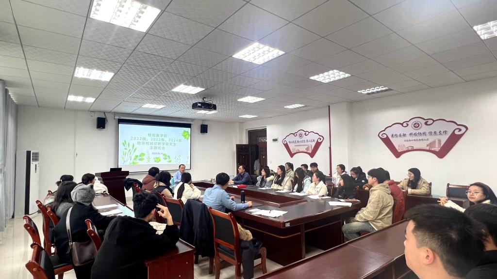 在公司统一部署下,2025年3月14日16时,tyc33455cc太阳成集团研究生党支部在公司学术报告厅召开“珍爱生命,向阳生长”主题班会,对全院研究生开展专题教育活动。本次活动针对医学研究生群体的学业压力、环境适应与心理调适等方面,通过多元化互动形式引导研究生科学应对成长挑战,培育积极正向的生命价值观。公司副经理杨艳教授、研究生党支部副书记董泽令、公司科技与研究生科科长张涛博士,以及公司全体博士、硕士研究生近50人参加此次主题班会。