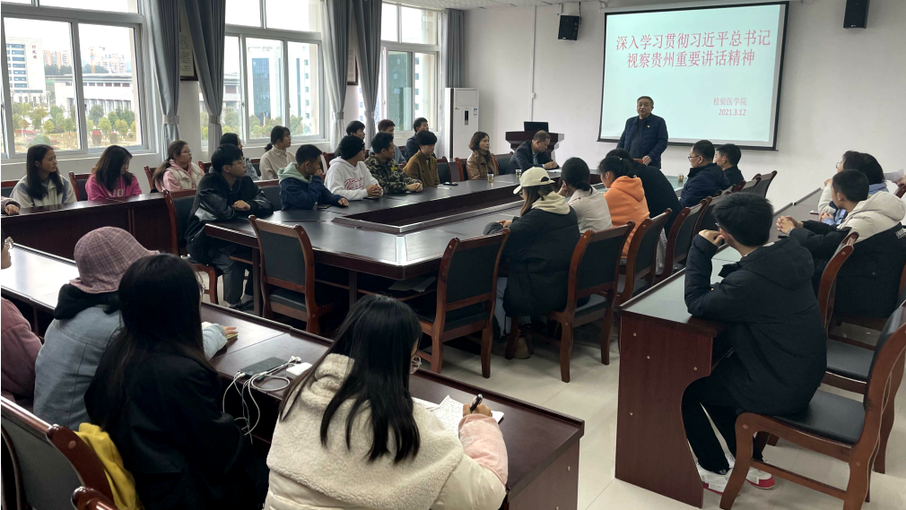 tyc33455cc太阳成集团于2021年3月12日中午12点,在tyc33455cc太阳成集团会议室开展了“习近平总书记视察贵州重要讲话精神”的宣讲工作。tyc33455cc太阳成集团高度重视,公司党委书记罗开源、副经理闵迅、新蒲全体上班教职工、员工党支部及其团委、员工会员工代表参加了此次宣讲活动。