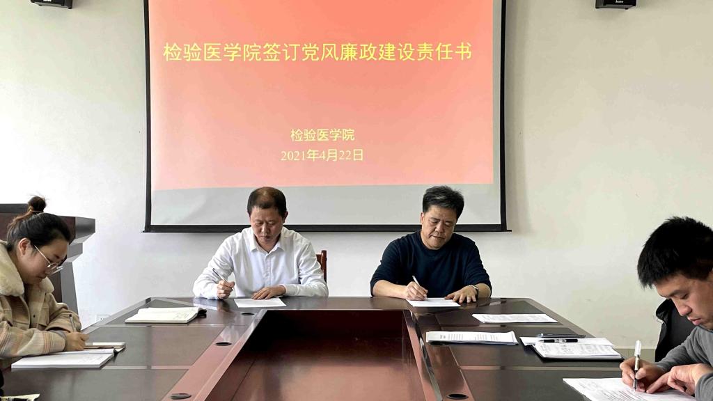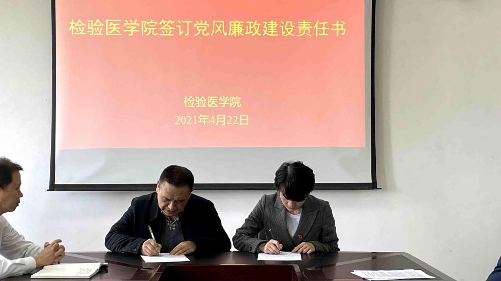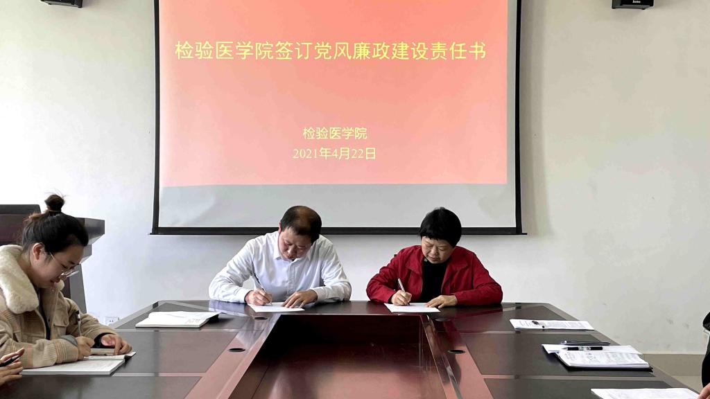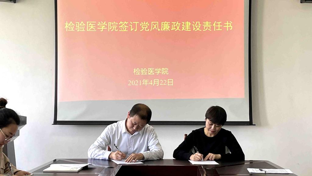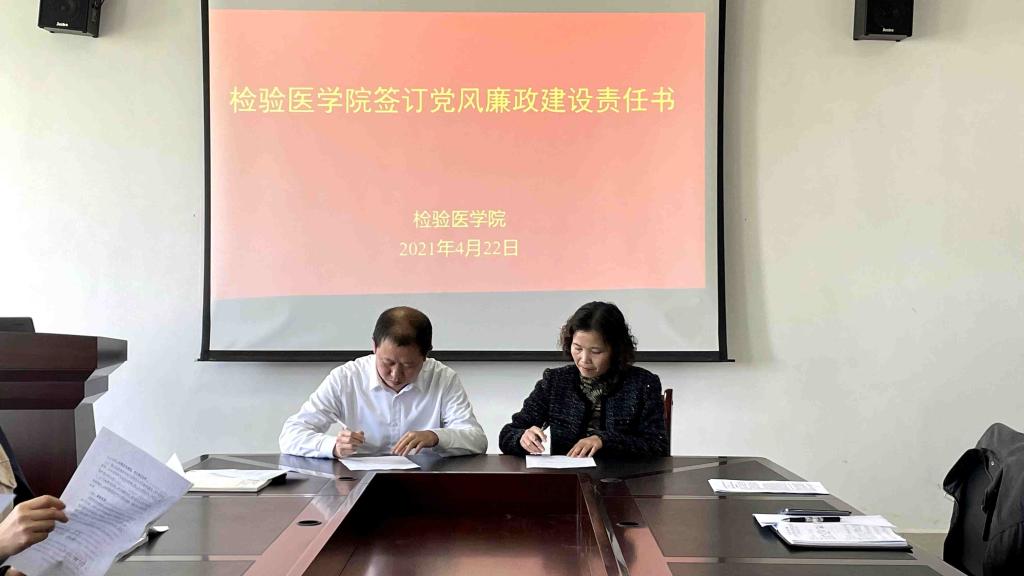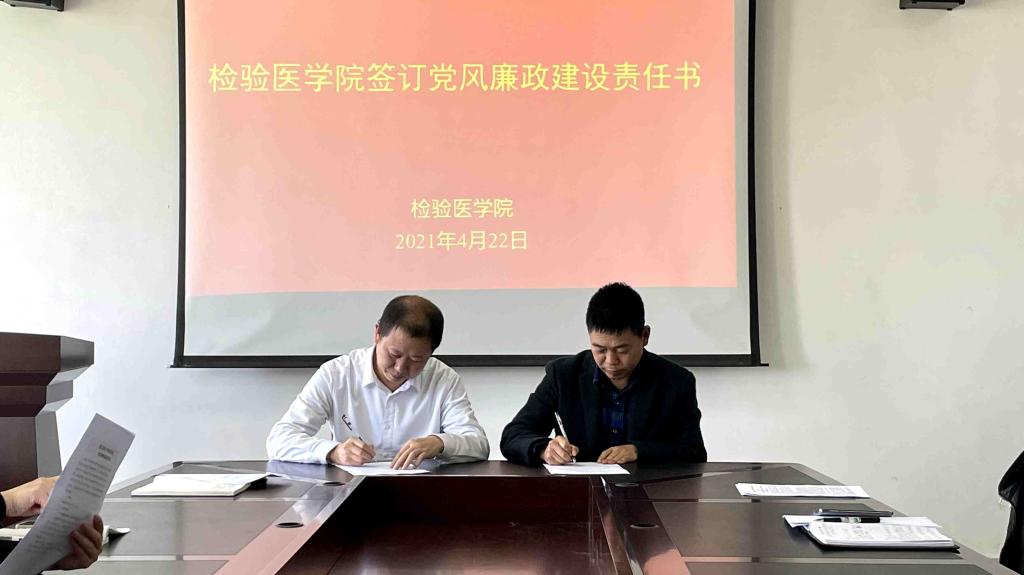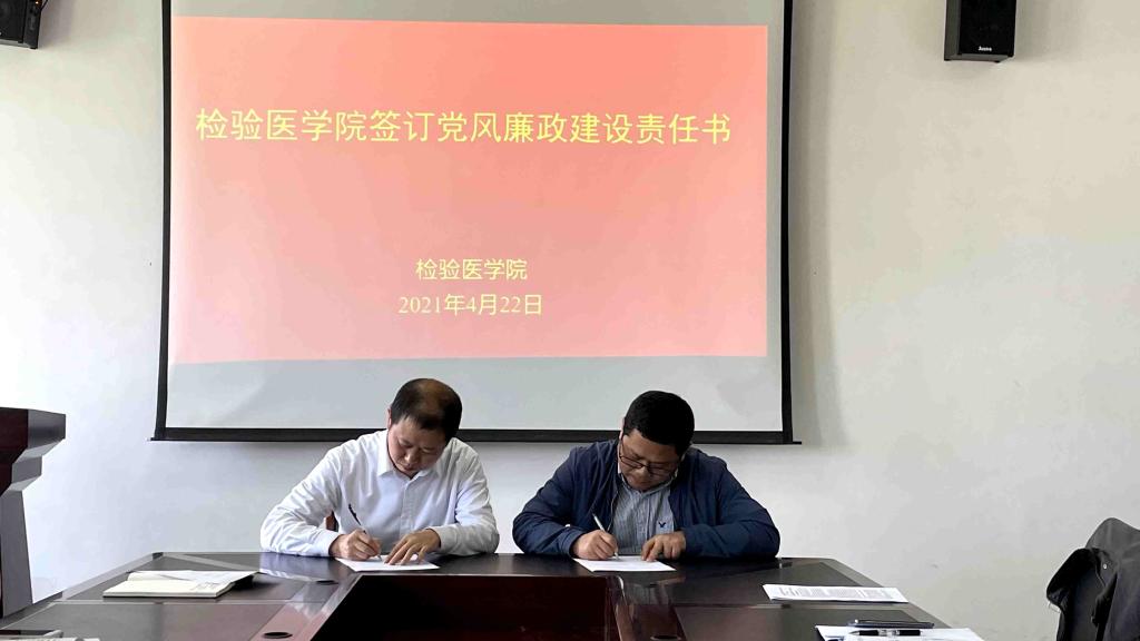 tyc33455cc太阳成集团副经理闵迅与临床微生物、免疫检验教研室主任陈泽慧签订党风廉政建设责任书