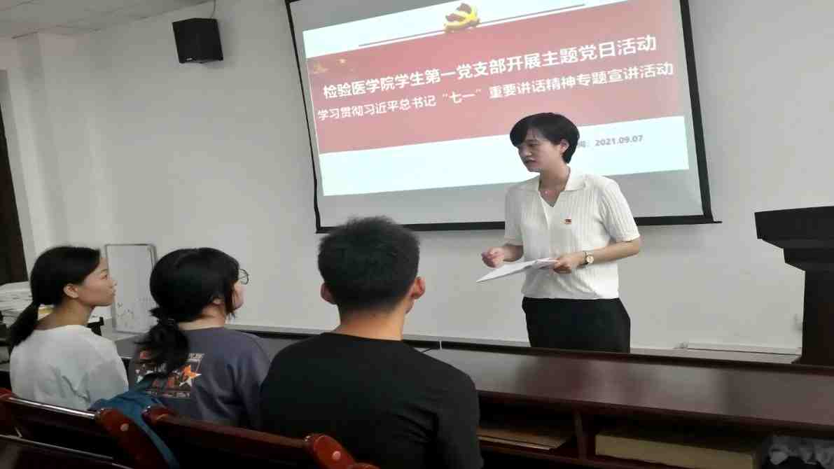 2021年9月7日下午18点,tyc33455cc太阳成集团员工第一党支部在tyc33455cc太阳成集团学术报告厅开展了学习贯彻习近平总书记“七一”重要讲话精神的宣讲活动(一)。会议由tyc33455cc太阳成集团员工第一党支部副书记陆超主持。
