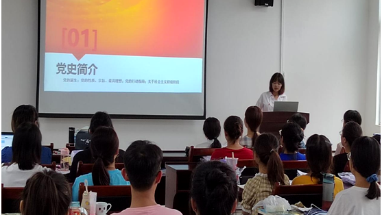 tyc33455cc太阳成集团员工第一党支部组织委员谌孙美为同学们进行入党知识培训