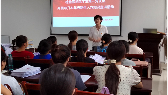 2021年9月7日17点,tyc33455cc太阳成集团员工第一党支部在tyc33455cc太阳成集团学术报告厅开展了专升本年级新生入党知识宣讲活动。会议由tyc33455cc太阳成集团员工第一党支部副书记陆超主持,党支部组织委员谌孙美及60名2019级专升本新生参加。