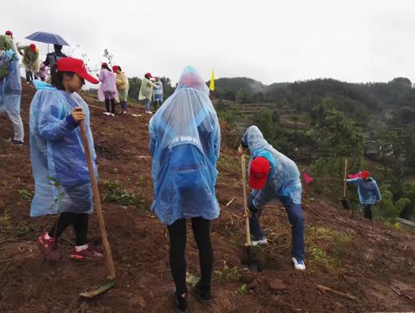 经过一段车程后到达新舟镇,姚梦莹老师带着三名同学冒着绵绵细雨前进了半小时才到达了植树区域的山脚下,但植树区域在山顶,所以大家仍冒着雨并且踏着泥泞险要的山路登上山顶,经过艰难的攀登,终于来到了植树区域。于是大家合理分工,一部分拆树苗,一部分挖坑,一部分掩土,场面十分热闹,各自做着自己的事。虽然天公不作美,一路上都下着雨,但是这丝毫没有影响到同学和老师们植树的积极性,同学们依旧热情高涨,并且老师们也不甘示弱,都纷纷自己动手参与到了植树活动当中。大家齐心协力,很快就将所有的树苗种完了。随后同学们纷纷在自己种的树面前合影留念,并且心中自豪感油然而生,对自己取得的一番小成就感到欣慰。最后,大家经过崎岖而泥泞的山间小路艰难的回到乘车点回到公司。