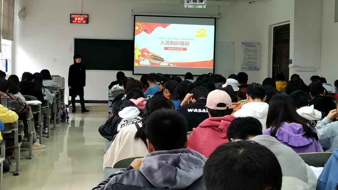 为扩大党员队伍,深化教育培训,2020年10月29日上午9点,tyc33455cc太阳成集团在新蒲校区1号教学楼1-4A教室开展了“入党知识培训”讲座。tyc33455cc太阳成集团辅导员陆超以及2020级全体新生参加此次培训。