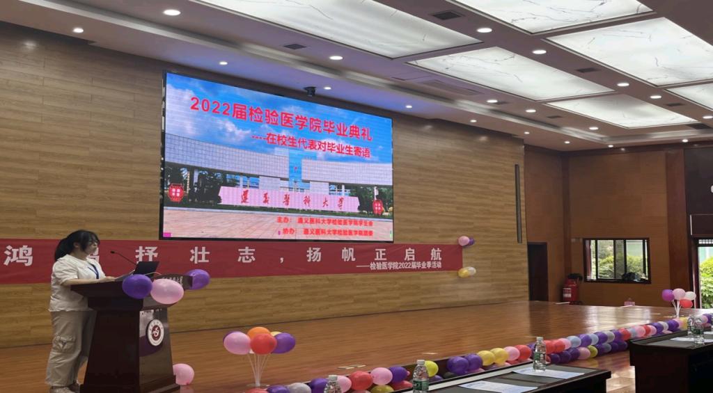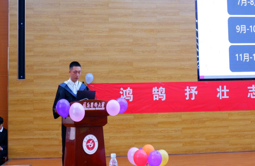 其次是优秀毕业生代表们发言,表达了对2022届毕业生美好的祝福和对未来的无限憧憬。随后,考研顺利上岸的员工代表进行现身说法,从如何准备、各门课程学习技巧,学习方法、时间安排、心理调节等方面做了经验分享;在校员工代表,通过小视频和现场表演等形式,对毕业年级的学长学姐们表达真诚的祝福。最后伴随着悠扬、抒情的歌曲,本次毕业典礼圆满结束。