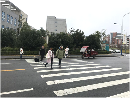 11月27日,员工党员分为两个小组,分别在一食堂门口以及三食堂的门口形成了一条“爱心斑马线”,当遇到横穿马路的同学时,上前进行文明劝导,告诉同学们不要横穿马路,要文明过斑马线,并且在看到行动不便的人时会帮助他们过马路。