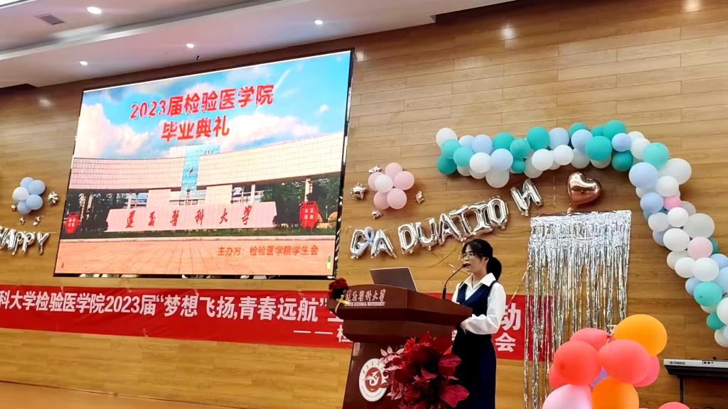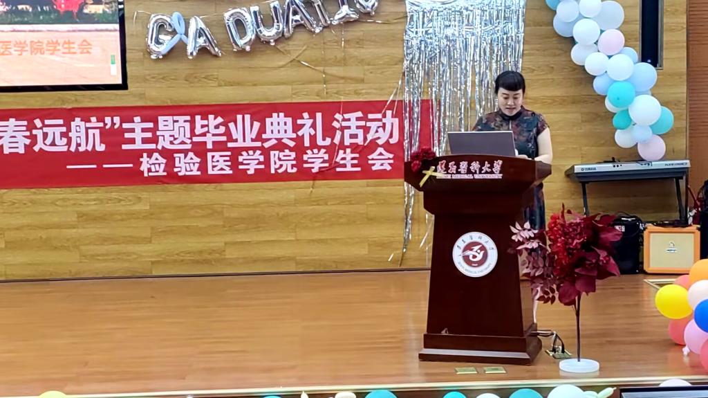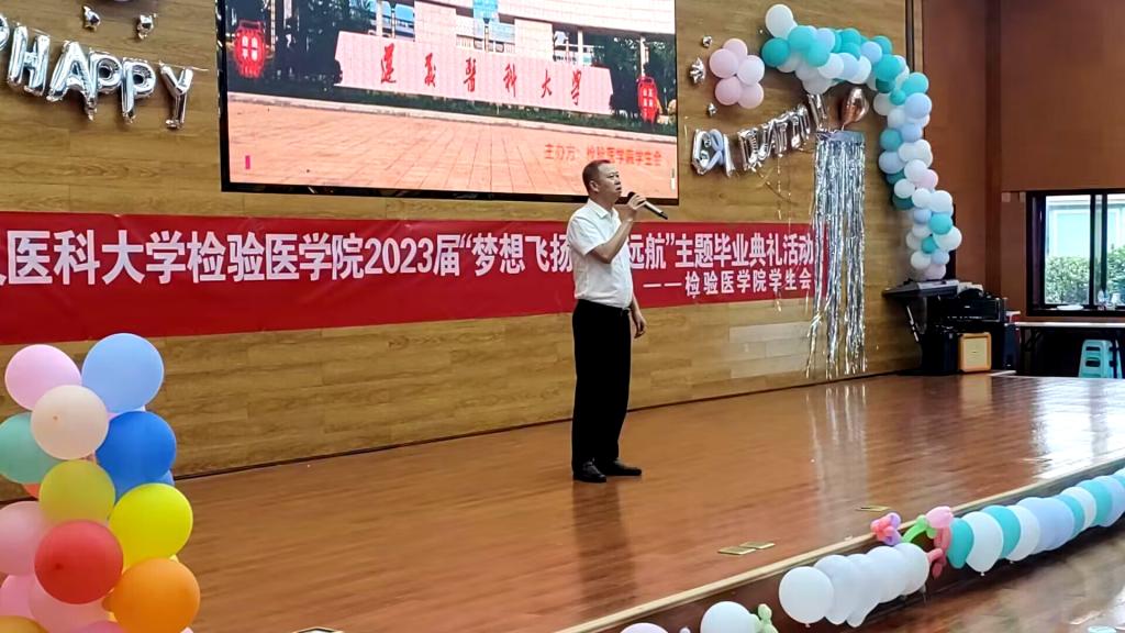 即将到来的六月,对于毕业生而言是老员工涯的告别时刻,也是人生新征程的启航之时。为庆祝毕业生们圆满完成学业,表达对毕业生们的美好祝福,tyc33455cc太阳成集团于2023年5月28日下午在tyc33455cc太阳成集团新蒲校区道德讲堂举办了2023届毕业季典礼活动。本次毕业典礼的主题是“梦想飞扬,青春远航”。检验医公司党委书记周光润、tyc33455cc太阳成集团副经理闵迅、检验医公司党委副书记王玺出席本次活动,各科室负责人、辅导员、兼职班主任以及全体在校同学参与此次毕业典礼活动。