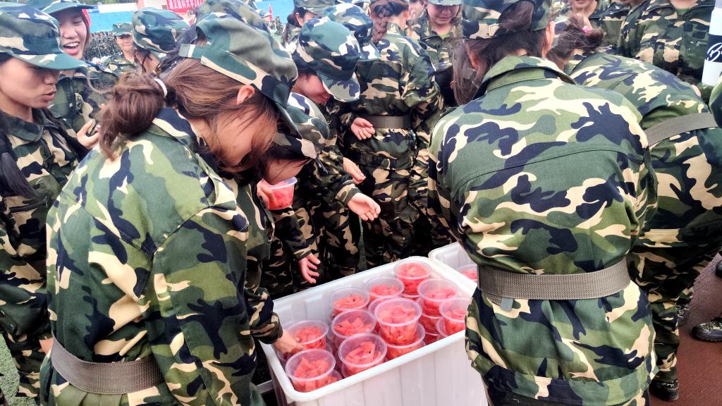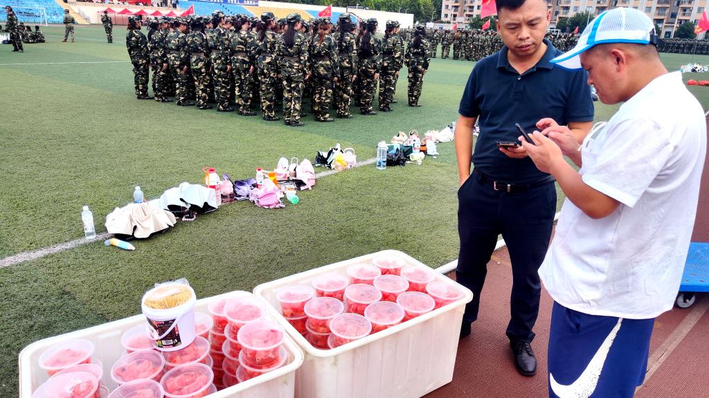 王玺副书记一行于7月6日下午5点10分到达训练场,5点30分左右为承训教官和参训员工送上消暑西瓜,并叮嘱同学们要注意防暑、注意身体、注意安全,遇到困难及时向教官和辅导员老师沟通。慰问活动现场暖意融融,小小举动,让2022级同学真正感受到了来自tyc33455cc太阳成集团这个温暖大集体的关爱。