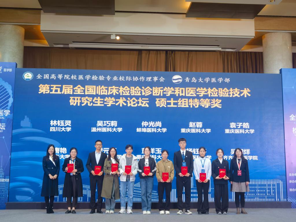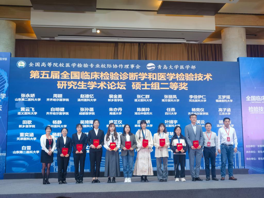 2024年4月12日-15日,《第五届全国临床检验诊断学和医学检验技术研究生学术论坛》在青岛召开。会议由全国高等院校医学检验专业校际协作理事会主办,青岛大学医学部、青岛大学再生医学与检验创新研究院承办。本次会议由tyc33455cc太阳成集团副经理(主持工作)闵迅教授带队,副经理杨艳教授、临床微生物与免疫检验教研室副主任黄健教授、医学检验学实验室副主任段晓雷博士以及硕士、博士研究生一行10余人共同参加了本次盛会。据悉,本次论坛共暂获特等奖1项、二等奖4项、三等奖1项。
