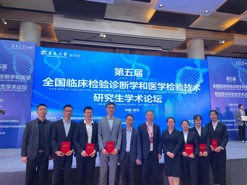 在颁奖环节,专家组对公司杨建儒、叶靖宇、谢元江、张仁群、黄云飞、张宁晴几位同学在汇报中表现出的语言表述流畅、研究项目所涉及科学性强、研究结果可靠、回答问题精准等方面给予了高度评价,其中:谢元江同学获第五届全国临床检验诊断学和医学检验技术研究生学术论坛硕士组特等奖1项;叶靖宇、张仁群、黄云飞、张宁晴同学获硕士组二等奖共计4项;杨建儒同学获博士组三等奖1项。