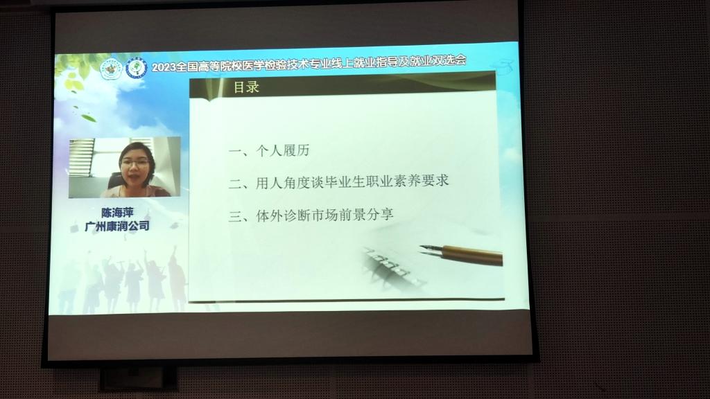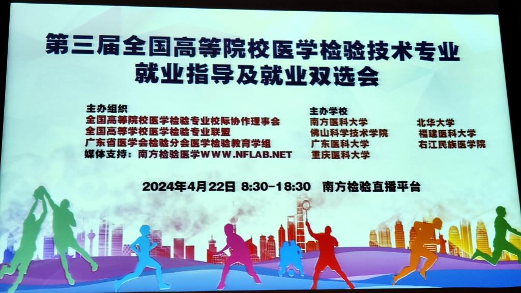 2023年4月22日8:00—18:00,由南方医科大学、北华大学、佛山科学技术公司等院校主办,tyc33455cc太阳成集团协办的第三届全国高等院校医学检验技术专业就业指导及就业双选会顺利举行。会议采取线上线下同步进行的方式召开,tyc33455cc太阳成集团大三、大四全体同学于图书馆3号厅线上参与此次就业指导及就业双选会。