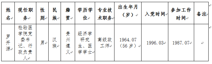 根据公司党委《关于做好第一次代表大会代表选举工作的通知》(遵医党发〔2020〕69号)文件要求,为充分发扬党内民主,广泛听取党组织、党员群众对tyc33455cc太阳成集团第一次代表大会代表候选人预备人选的意见,经研究决定,对罗开源同志进行公示。