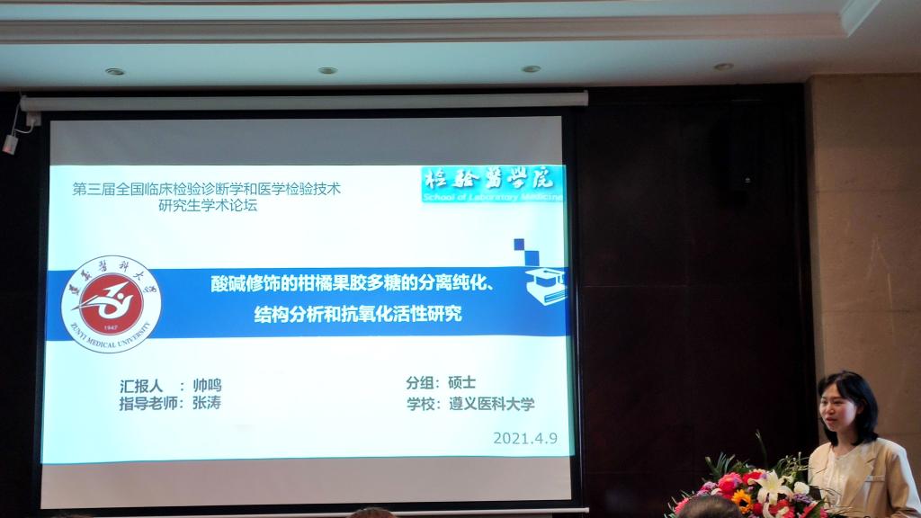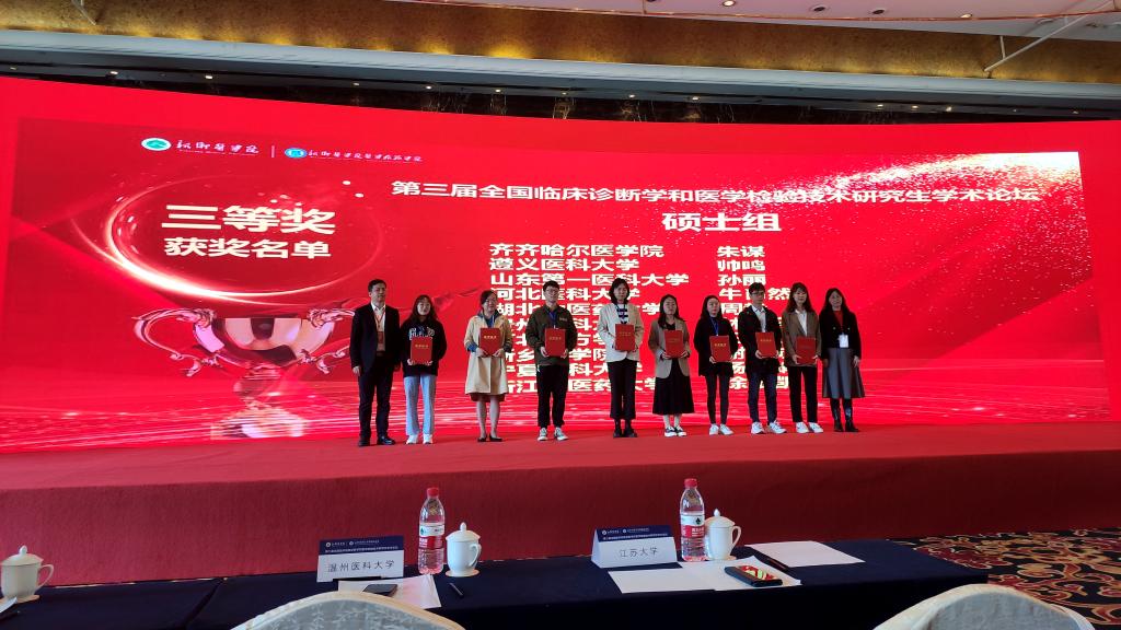 2021年4月8日至4月10日,由全国高等院校医学检验专业校际协作理事会主办、新乡医公司医学检验公司承办的第三届全国临床检验诊断学和医学检验技术研究生学术论坛在新乡召开,由tyc33455cc太阳成集团派出的临床检验诊断学专业2019级硕士生帅鸣获得硕士研究生组三等奖。