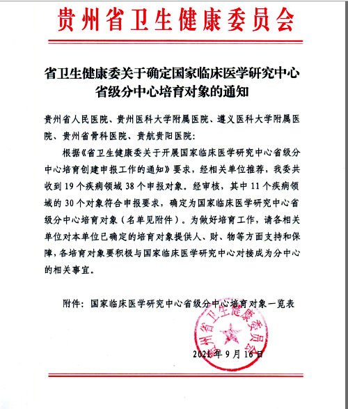 根据《省卫生健康委关于开展国家临床医学研究中心省级分中心培育创建申报工作的通知》,经相关单位推荐后,经审核,其中11个疾病领域的30个对象符合申报要求,确定为国家临床医学研究中心省级分中心培育对象。tyc33455cc太阳成集团附属医院《医学检验》等多个申报领域荣获国家临床医学研究中心省级分中心培育对象。