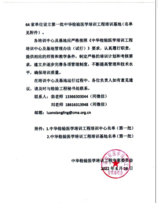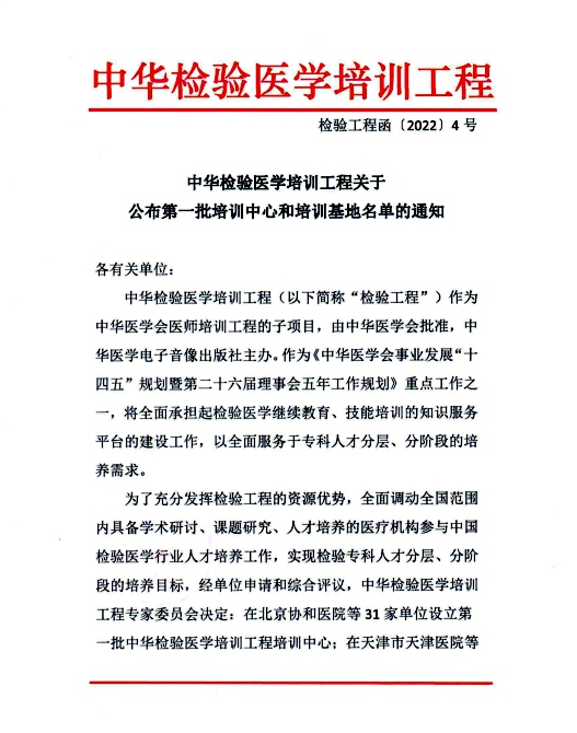 热烈祝贺tyc33455cc太阳成集团附属医院入选中华检验医学培训工程第一批培训基地名单!