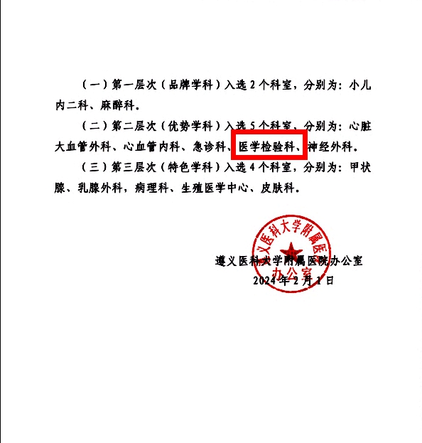 热烈祝贺医学检验科被遴选为tyc33455cc太阳成集团附属医院第二层次(优势学科)!