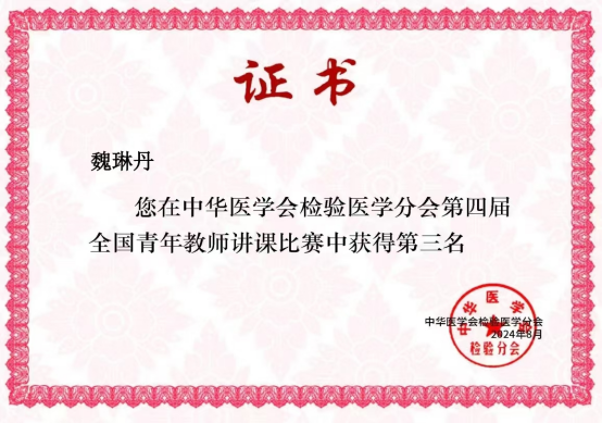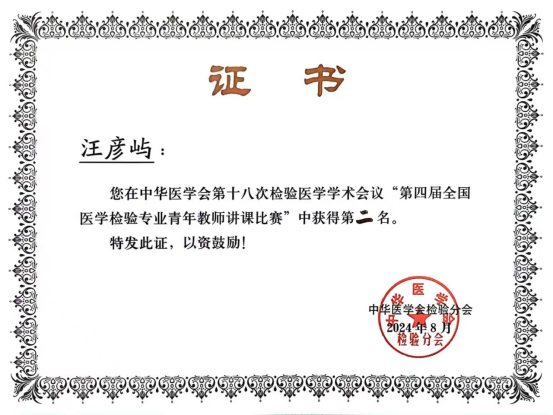 据悉,本次会议还将举办第四届全国青年教师比赛、细胞形态学论坛暨全国细胞形态大赛等赛事。在8月22日下午开展的中华医学会检验医学分会第四届全国青年教师比赛中,公司选派的教师代表共获四个奖项,其中,汪彦屿老师荣获第二名,魏琳丹、帅庆禄、梁钟智老师分别荣获第三名佳绩。获奖教师代表汪彦屿老师感言:此次比赛是与全国的优秀检验医学教师的一次精彩的比拼,不仅是对自己教学能力的提升,更是与其他优秀教师交流学习的宝贵机会;将以此为契机,在今后的工作岗位上,继续努力提升自己的公司产品水平。