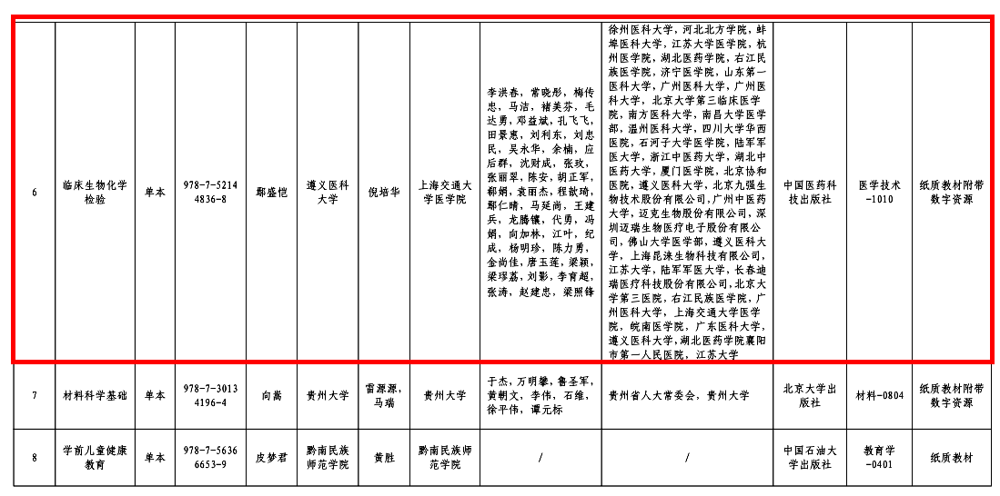 1.由tyc33455cc太阳成集团特聘候鸟型专家鄢盛恺教授与上海交通大学医公司倪培华教授担任主编的《临床生物化学检验技术》本科教材,获批“贵州省优秀教材”,并推荐申报国家级优秀教材。
