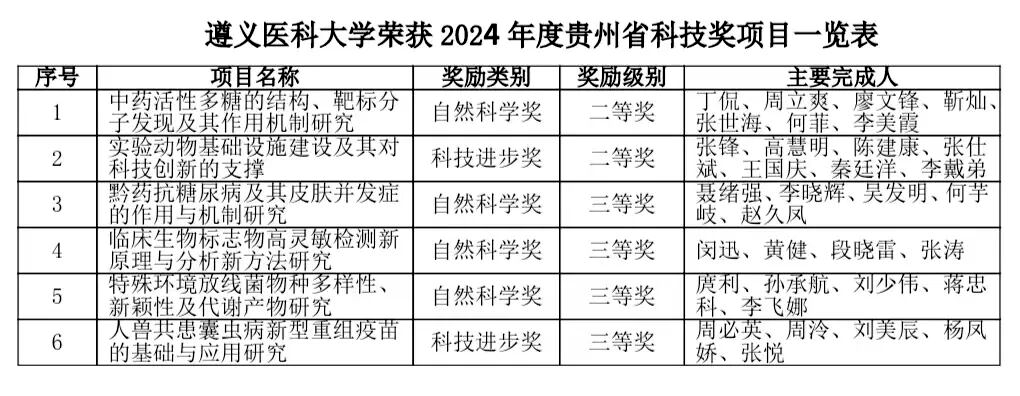 由闵迅、黄健、段晓雷、张涛团队合作申报的《遵义市体外诊断生物标志物基础与应用科技创新团队建设》获批2025年遵义市科技创新团队1项。