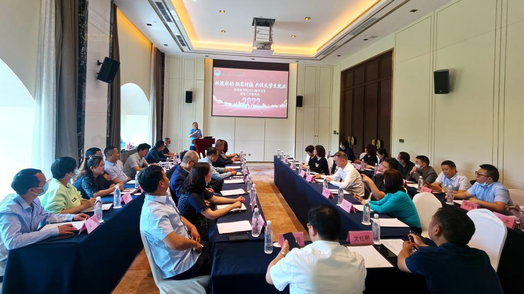 为进一步加强疫情防控常态化下毕业生就业指导与服务,推动tyc33455cc太阳成集团毕业生就业工作科学有序发展。公司通过“校院联动,供需对接”方式于2022年5月7日下午在遵义市新蒲新区开元酒店行政楼会议室召开2022届毕业生就业工作推介会。遵义市、县级共17家医疗单位相关医学检验科负责人、tyc33455cc太阳成集团就业创业工作领导小组全体成员、毕业年级辅导员参会。会议由公司党委书记罗开源主持。