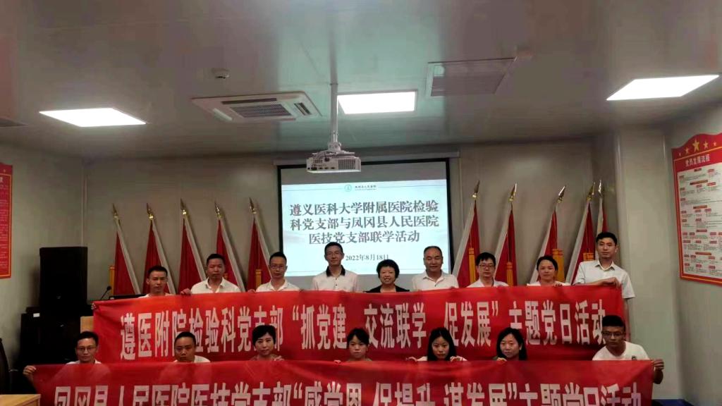 2022年8月17日至19日,tyc33455cc太阳成集团附属医院检验科党支部依托区域检验专科联盟与余庆、凤冈、湄潭县人民医院开展“抓党建、交流联学、促发展”主题党日跨单位联学活动。遵医附院检验科党支部书记陈泽慧教授主持活动。