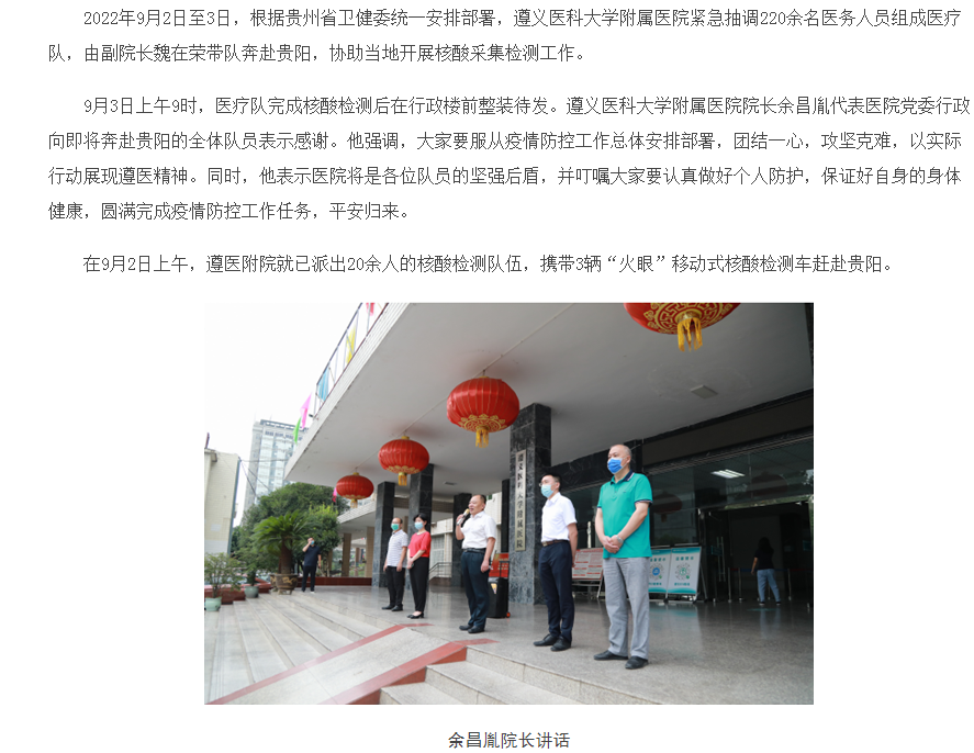 tyc33455cc太阳成集团附属医院抽调220余名医疗队员奔赴贵阳开展核酸采集检测工作