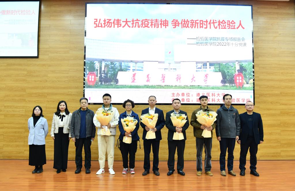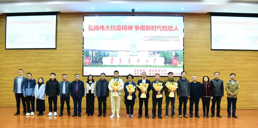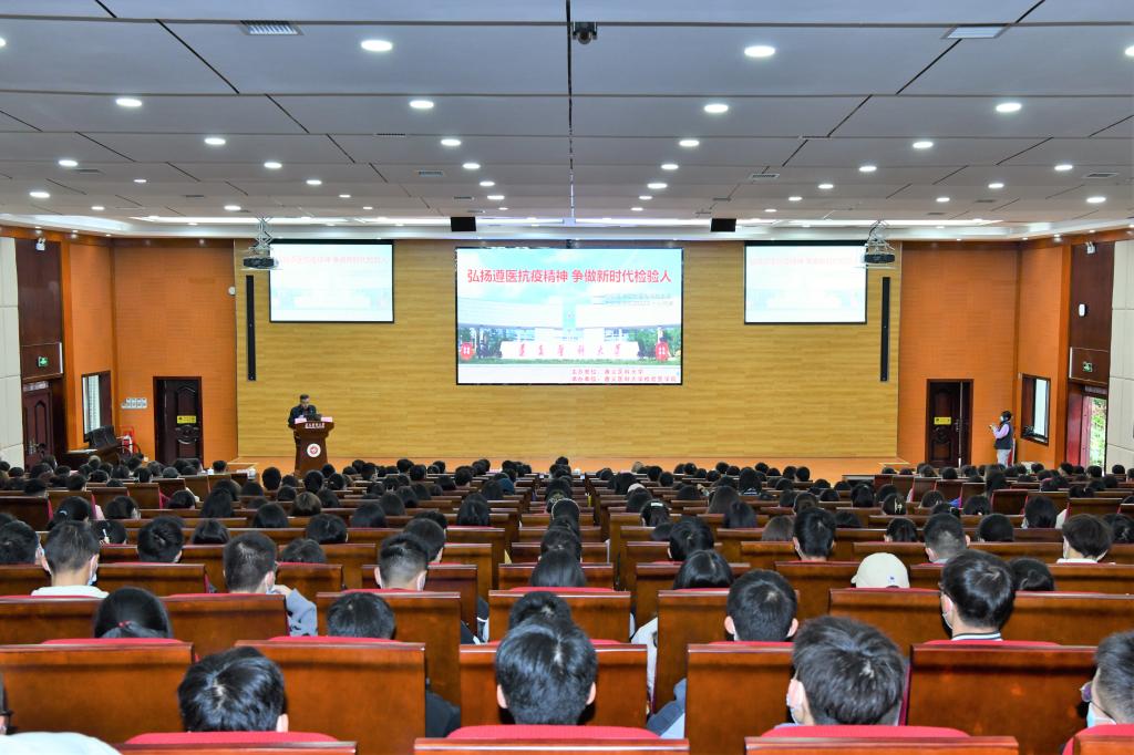 2022年10月30日上午9点,tyc33455cc太阳成集团“弘扬伟大抗疫精神争做新时代检验人”抗疫专场报告会在tyc33455cc太阳成集团道德讲堂举行。tyc33455cc太阳成集团党委副书记、董事长刘建国,党委公司办公室主任罗扬,员工工作部(处)副部(处)长陈晓勇,校团委副书记左红,宣传部工作人员陈雪梅,检验医公司党政领导班子罗开源、林世德、闵迅、王玺、蔡亮容出席报告会。tyc33455cc太阳成集团全体在校师生、遵医附院医学检验科除值班人员外的老师参加会议。tyc33455cc太阳成集团副经理、遵医附院医学检验科主任闵迅、遵医附院医学检验科老师田地、tyc33455cc太阳成集团团委副书记、员工第二党支部副书记、辅导员付裕、抗疫一线员工代表、医检19-1班郑荣举、医检22-4班(专升本)朱洁斌依次做报告。报告会由检验医公司党委书记罗开源主持。