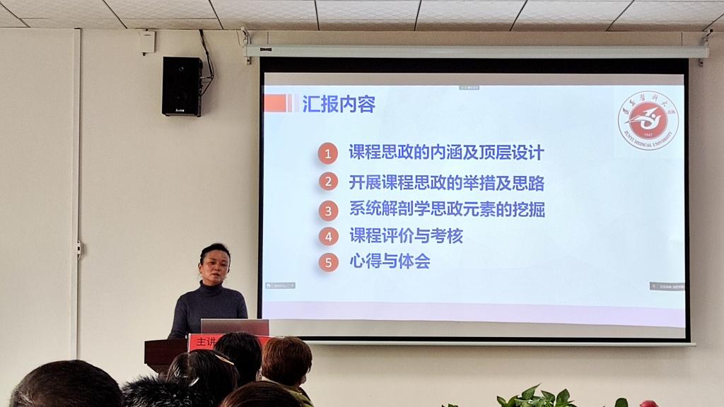 钱民章教授围绕“在追求与奉献中享受人生”的主题,以自己75载学习、生活、工作的经历,动情地讲述了自己追逐梦想、永不言弃、坚守初心、甘于奉献的历历往事。她嘱托青年教师要牢记习近平总书记的寄语,要牢记党的教诲,立志民族复兴,不负韶华,不负时代,不负人民。张潜教授分享了课程思政在系统解剖学中的实践与体会,通过充分挖掘人体解剖学中的思政元素,张老师把思政教育点点滴滴地融进课程教学,春风化雨,润物细无声。课程思政可以延伸教育的深度,拓宽教学的广度,增加医学的温度,让员工感恩“无言良师”,践行医学誓言,立志做医德高尚,医术精湛的健康卫士。