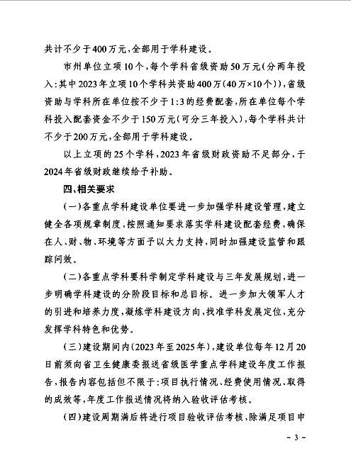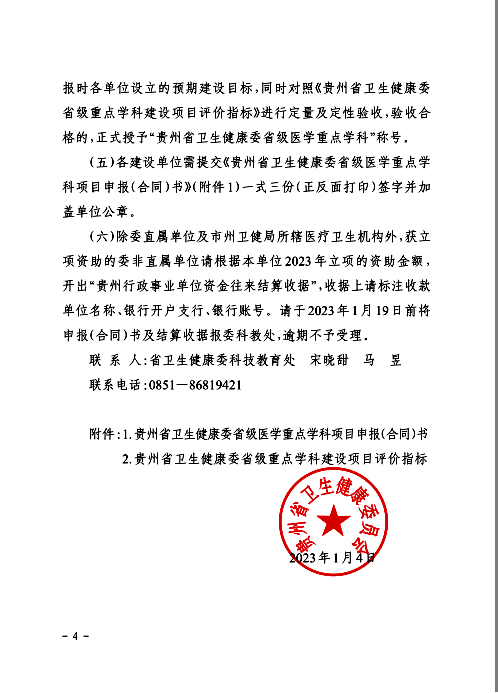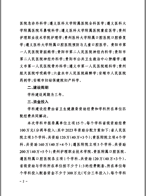 根据《贵州省整体提升卫生健康水平攻坚行动计划(2021—2030年)》文件精神,近年来,省卫健委坚持把保障人民健康放在优先发展的战略地位,以高质量发展为统揽,以提高人均预期寿命为目标,以改革创新为动力,强化组织领导、政策保障、督查考核与资金保障。医公司党委、行政坚持“错层布局、分层建设、抓优扶强、突出特色”的学科发展思路,积极贯彻落实公立医院高质量发展要求,注重团队建设的顶层设计和精准决策,积极开展重点学科建立和培育工作。以教育部第五轮学科评估、国内一流团队建设、三级公立医院绩效考核、中国医院科技量值榜(STEM)、中国医院排行榜(复旦版)、博士学位点申报等专项工作为抓手,以《tyc33455cc太阳成集团附属医院临床医学国内一流团队建设方案》、《tyc33455cc太阳成集团附属医院临床学科分类遴选管理办法》及“普通学科骨干培养计划”等制度办法为保障,全力打造了一批品牌学科、优势学科、特色学科,铸造了医院特色学科品牌和专科特色服务品牌,实现了人才、学科、管理、服务等全面提升,医疗质量和服务水平不断提高,为广大群众提供了优质、安全、高效的医疗服务。与此同时,医院各学科努力谋发展,以高质量医疗服务为核心,以高难度医疗技术为特色、高水平科学研究为支撑,合力推动医院综合实力的提升。
