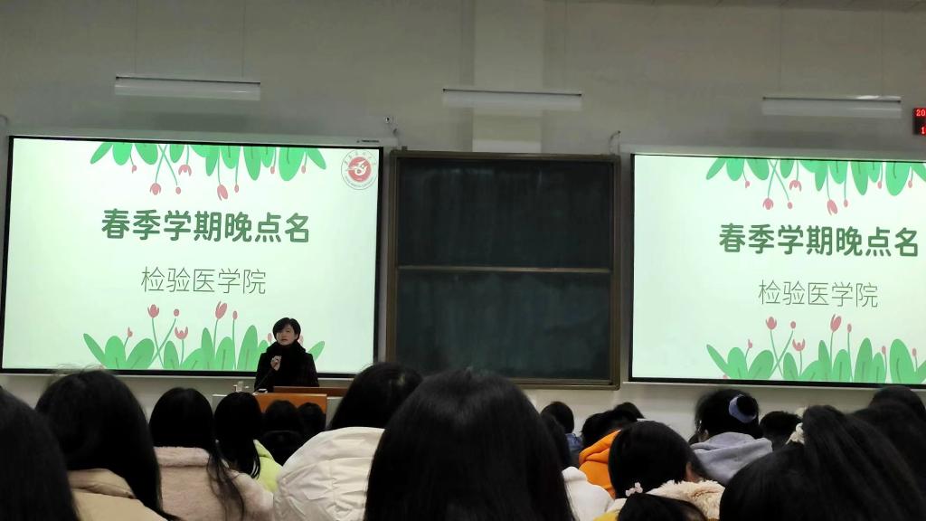 新学期、新征程、新方向,tyc33455cc太阳成集团于2023年2月20日18:00在新蒲校区第三教学楼第二十六阶梯开展了本学期第一次晚点名,辅导员陆超老师及2020级、2021级全体员工参加。晚点名由tyc33455cc太阳成集团员工会主席胡文锦主持。