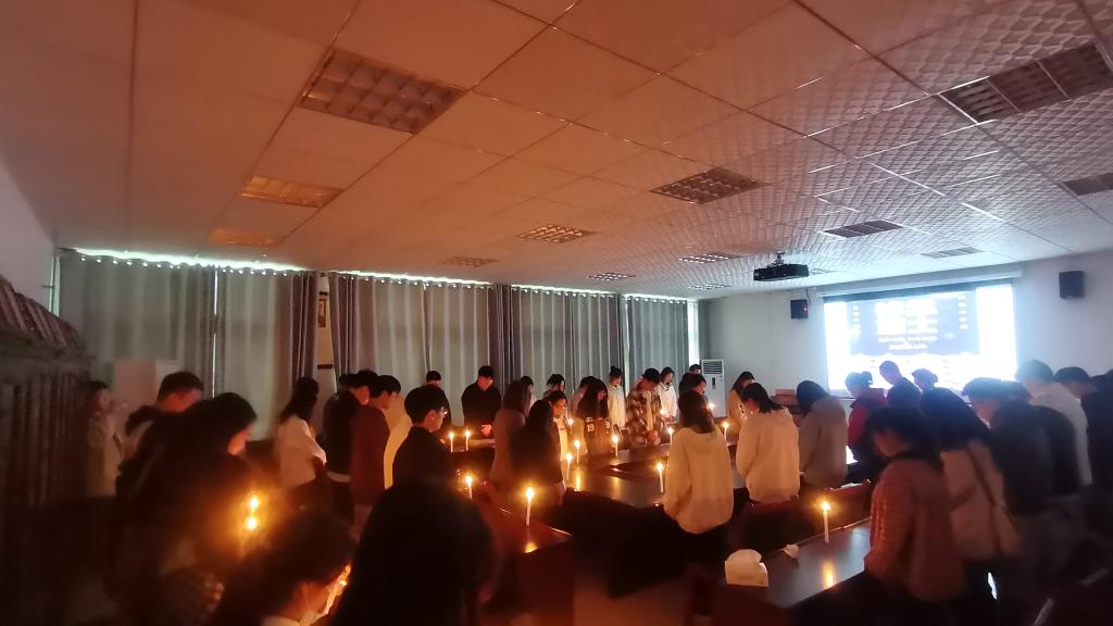 最后大家点燃蜡烛,伴奏雄壮悲怆的《英雄儿女》背景音乐,集体默哀,遥祭英烈,向英烈表达了崇敬缅怀之情。(撰稿及摄影:张雪芳, 一审:张增平 董泽令, 二审:蔡亮容, 三审:周光润)