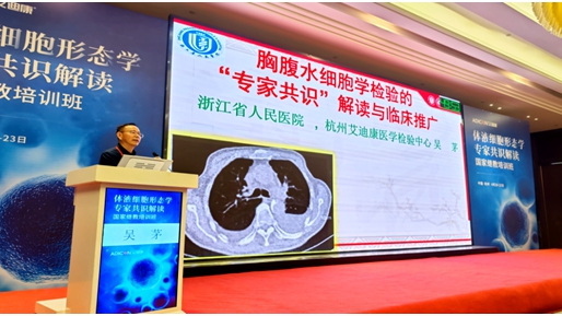 4.20日-4.23专家授课环节,首先由杭州艾迪康公司的负责人潘超致开幕辞并就 “体液标本流程与质量控制要求”精彩授课。随后吴茅教授、周道银教授、许绍强教授、段爱军教授、曹喻副教授分别就浆膜腔积液、支气管肺泡灌洗液、脑脊液、前列腺液、关节腔积液的专家共识联合临床病例做了详细的解读和授课。此外,张建教授、赵成艳教授就《全身各位部分的细针穿刺样本形态和支气管刷片肺部穿刺的细胞学形态》;缪峰教授就《典型的寄生虫感染人的病例》;闫立志教授就《尿液沉渣染色的多种方法与临床意义》;北京协和医院张时民教授就《体液中的各种结晶的临床意义》;杨凡教授、孙翠莲教授、邓飞教授、岳保红教授等多位知名专家进行了精彩授课与病例分析。会议最后举行了精彩的体液细胞现场阅片及指导环节。