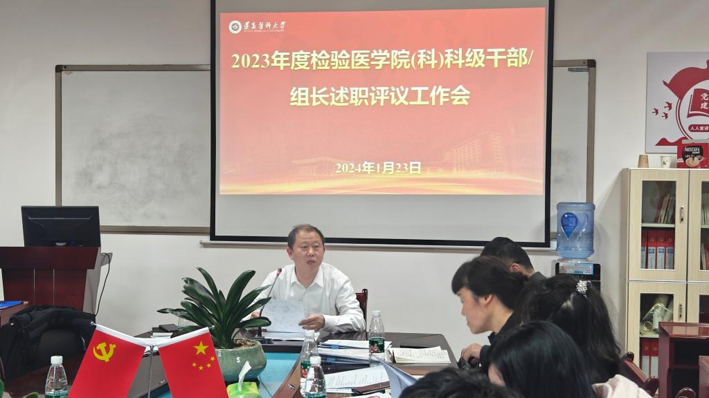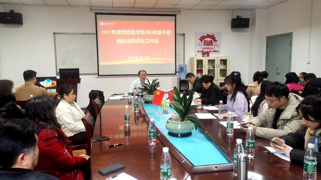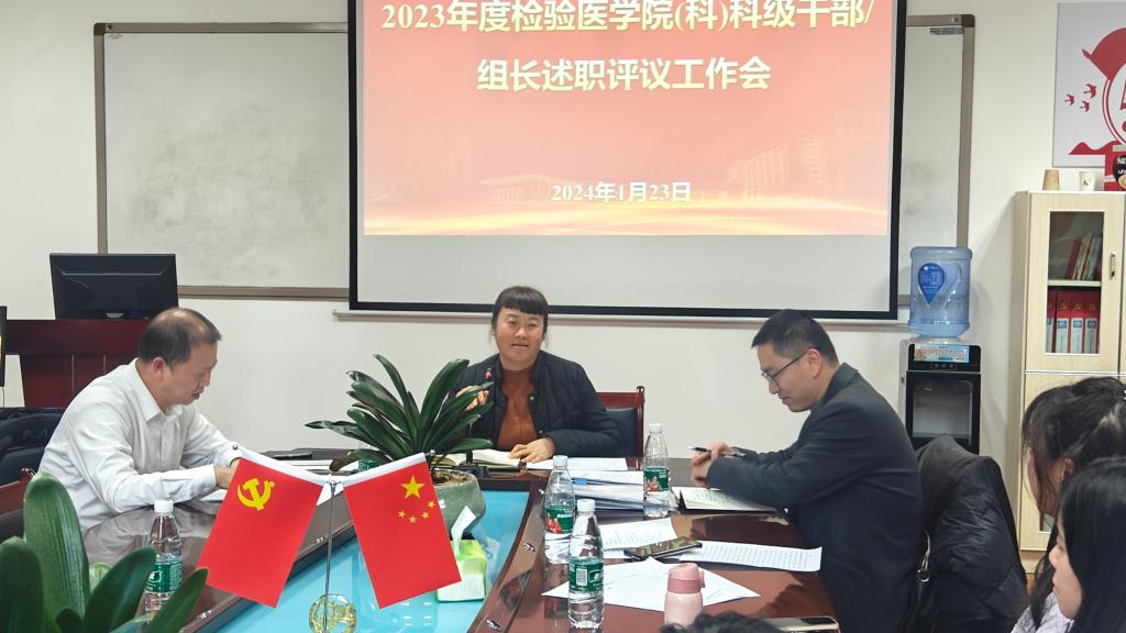 2024年1月23日中午1点,tyc33455cc太阳成集团、附属医院医学检验科在门诊六楼会议室召开2023年度科级干部、各专业组及综合组组长年终考核述职。据悉,本次述职共遴选tyc33455cc太阳成集团/科党政领导班子、科主任、副主任及职工代表共40人作为评委,由10名科级干部、13名各专业组和综合组组长以PPT形式进行6分钟汇报。会议由tyc33455cc太阳成集团副经理暨附属医院医学检验科主任闵迅教授主持;tyc33455cc太阳成集团检验医公司党委书记周光润、副书记罗治宇出席会议。