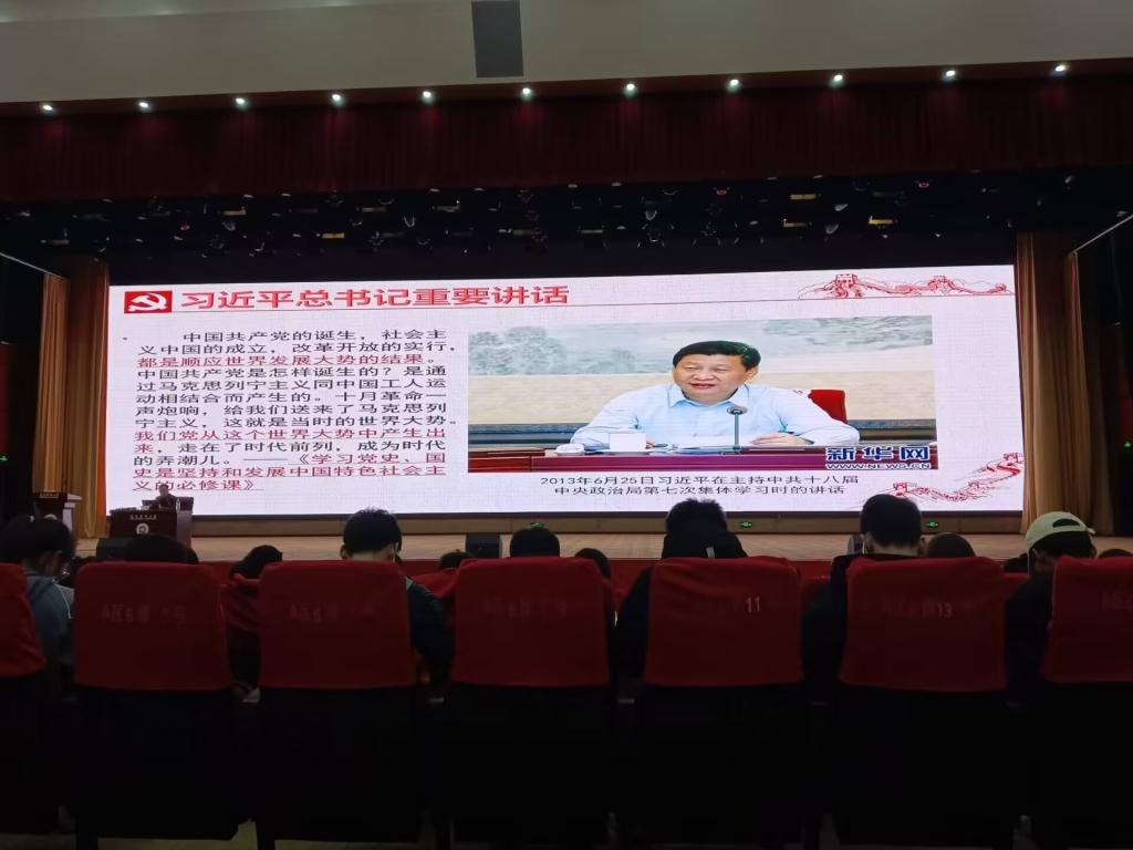 为深入贯彻习近平总书记2019年3月18日在公司思想政治理论课教师座谈会上的重要讲话精神(以下简称“3·18”讲话),贯彻落实《中华人民共和国爱国主义教育法》,引导员工树立正确的爱国主义观念、以史为鉴、以史明志、知史爱党、知史爱国,tyc33455cc太阳成集团于2024年3月18日晚七点在会堂开展“开学第一课”活动。检验医公司党委副书记罗治宇以主题为《中国共产党诞生和新中国建立》授课,tyc33455cc太阳成集团全体员工和辅导员参加此次活动。