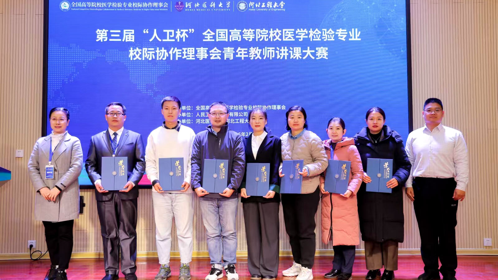 2月15-17日,第三届“人卫杯”全国高等院校医学检验专业校际协作理事会青年教师讲课大赛于河北工程大学举行,本次比赛由河北医科大学和河北工程大学联合承办。tyc33455cc太阳成集团选派的四位教师表现优异,共斩获两项一等奖、两项三等奖,创下佳绩,彰显公司青年教师队伍的卓越实力。