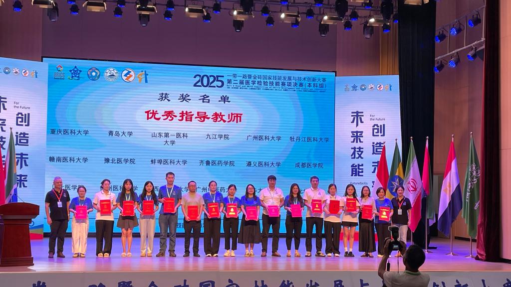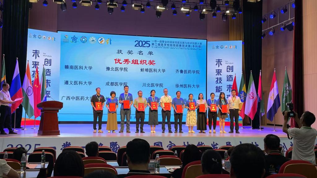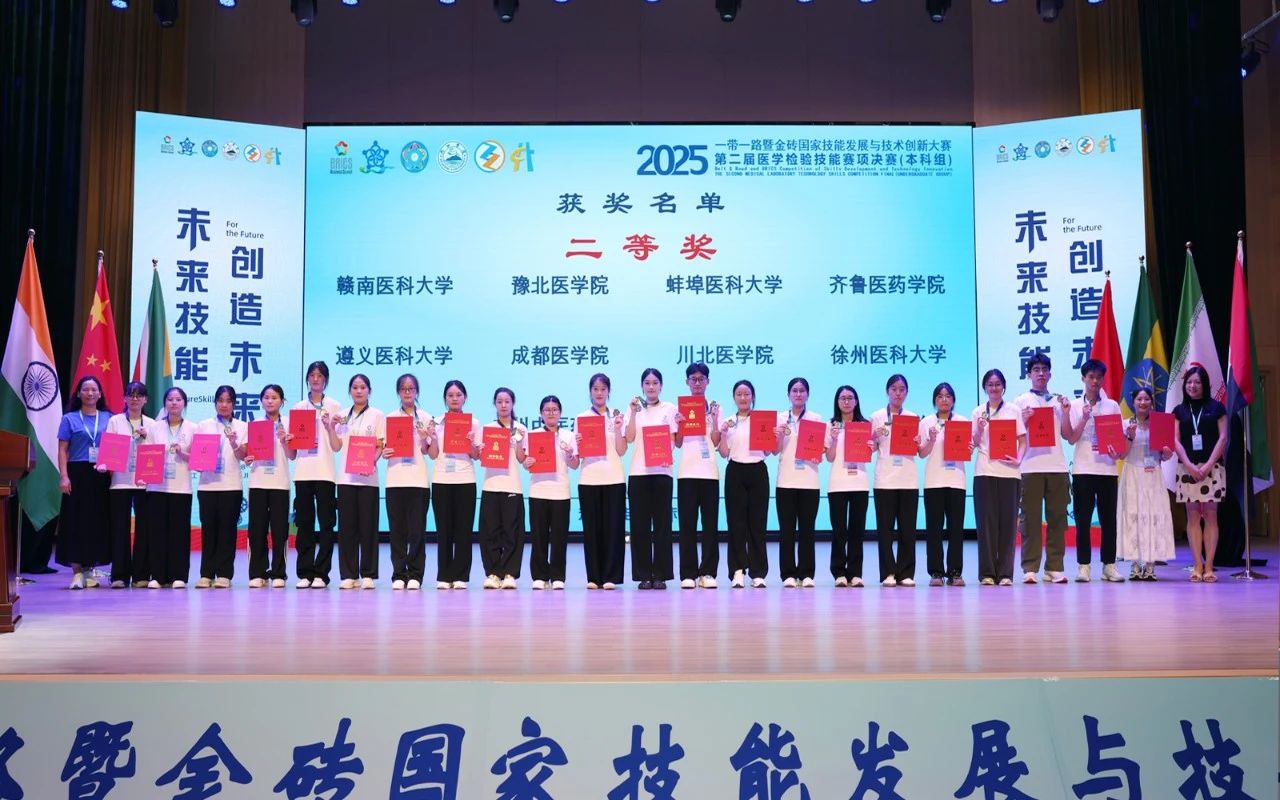 金砖国家技能发展与技术创新大赛是经金砖国家工商理事会批准、得到多国多部门支持的重要国际赛事,已成为推动金砖国家间教育合作、技能开发与人文交流的关键平台。本届大赛以“未来技能创造未来”为导向,聚焦工业4.0、人工智能、数字技术等前沿领域,旨在培养国际化高技术技能人才。本次医学检验技能比赛全国决赛竞争激烈,来自全国69所高校的240名选手同台竞技,教师与员工选手各120人参与四轮角逐。其中,二等奖(银牌)获奖比例约为20%,“优秀指导教师”奖授予获得一、二等奖队伍的指导者,“优秀组织奖”则用以表彰组织工作出色的参赛单位。