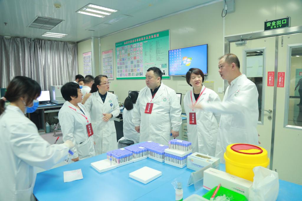 会后,专家组前往医学检验科现场查看,并开展为期3天的评审工作。根据评审流程,专家组紧紧围绕:组织管理、文件评审、现场查看、现场实验、现场提问、形态学考核和对授权签字人考核等工作进行现场检查;专家组还分赴肝胆胰外科、甲乳外科、内分泌科、呼吸二科等临床科室开展专项检查,主要围绕:核查危及值处理记录、抽查护理人员对标本采集流程熟悉程度、询问临床医师对检验与临床沟通咨询服务等形式,对ISO15189涉及的管理要素和技术要素进行了细致检查,并召开了评审组内部会议和实验室沟通会。