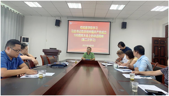 2021年9月9日16:30,tyc33455cc太阳成集团在会议室开展了第二次“学习贯彻习近平总书记七一重要讲话精神”的专题教育。tyc33455cc太阳成集团经理林世德,院党委委员、副经理闵迅,各科室主要负责人及全体新蒲校区教师参加会议。会议由公司党委书记罗开源主持。